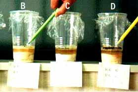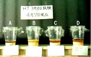 これは1ヵ月後のものですが、Aが、水の部分、粉の部分とも腐敗やカビが少なく一番良好です。